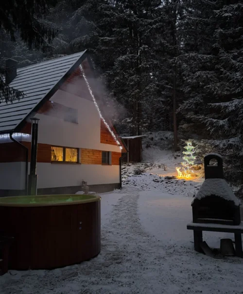 Doprajte si dokonalý relax v kúpacej kadi priamo pri Chate Maco. Horúca voda, čerstvý horský vzduch a pokoj prírody vytvárajú ideálne miesto na oddych po dni strávenom na horách – v každom ročnom období.